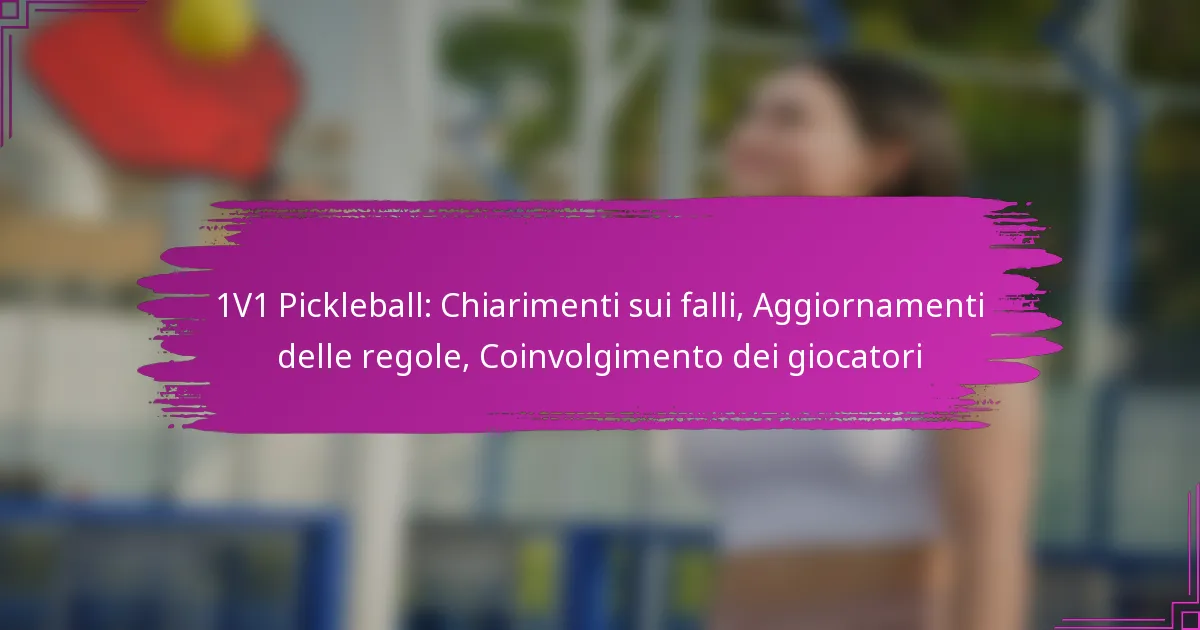 Nel pickleball 1V1, comprendere i falli è essenziale per un gioco equo e per mantenere l’integrità del gioco, poiché queste violazioni possono influenzare significativamente l’esito di un punto. I recenti aggiornamenti delle regole mirano a chiarire questi falli, migliorando al contempo il coinvolgimento dei giocatori e rispondendo ai feedback della comunità, migliorando infine l’esperienza complessiva di gioco. Partecipando attivamente a leghe locali e connettendosi con altri giocatori, gli individui possono promuovere un ambiente di supporto che incoraggia lo sviluppo delle abilità e il divertimento nel praticare lo sport.
